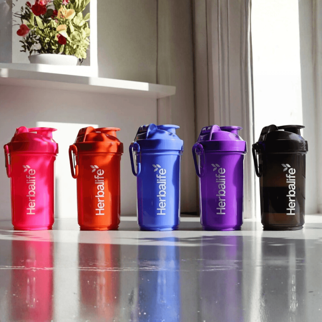 Herbalife shakerilla sekoitat smoothiet näppärästi. Uudistuneet ihanat värit: oranssi, sininen, pinkki, musta ja lila. Isompi koko – nyt 600 ml.